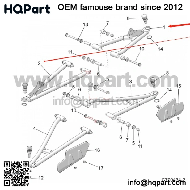 1025575-458 – MATTE BLACK FRONT LEFT UPPER A-ARM for Polaris Crew XD Size Pro Gas Models