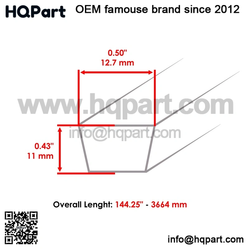 114 1/4 Inch 1/2″ Thick Deck Drive Belt for John Deere – Part #GX10063