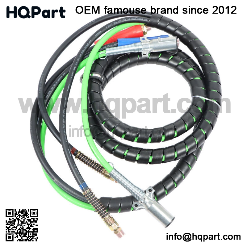 Specifications:Total length:15 ftFitting material:Brass7 way plug material:Aluminum AlloyReplaces Part Number:Philips 30-2151, Philips 302151, Tectran 169127, Peterbilt PE13000, Tremec Sloan 451097, OTR6814.These are cross reference numbers.Features:The Department of Transportation mandates that every ABS tube, coil, and power cord meets its strict requirements.Large and Color-coded grips for easy coupling/uncoupling and hose support. The air lines have swivel fittings at tractor end for quick installation, preventing kinks, and easy gladhand connection. The Spiral Wrapped allows your connections a clean and organized look and easy to use assembly that installs in minutes.Our power cords utilize zinc die-cast plugs to efficiently move electricity from the engine to the trailer. This pack combines the compressed air tubing with the power cord for maximum convenience.The 3-in-1 ABS pack has rubber Weather Seal Sleeves near the ends of each plug to protect you from accidental shock during installation or repair. These also protect the cords from weather damage, which could cause a significant hazard.Package list:15FT 3-in-1 Wrap Set Air Line Hose Assemblies