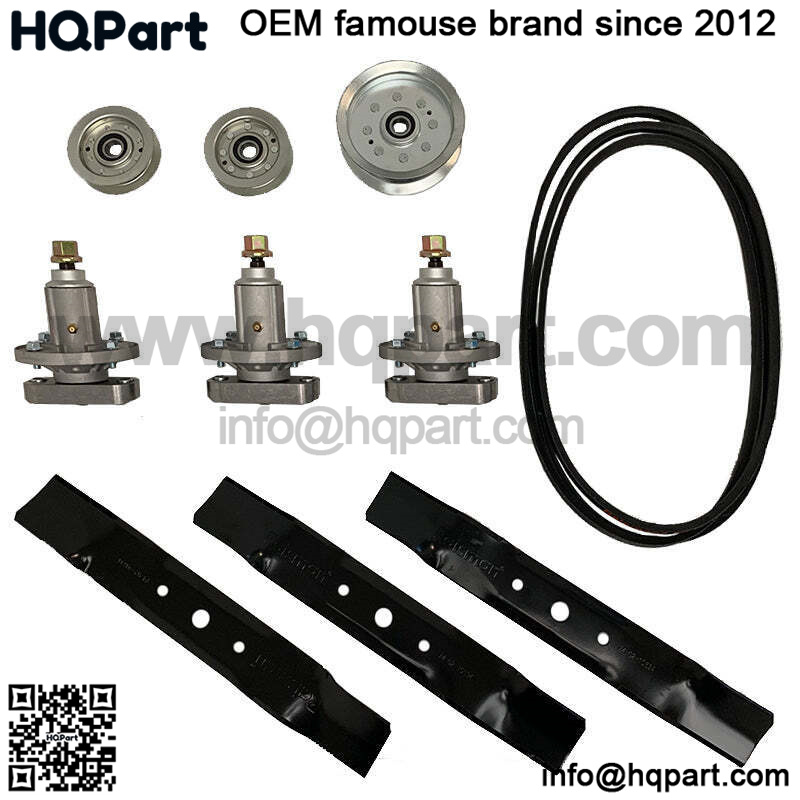 (3) SPINDLES, (3) BLADES, (1) DRIVE BELT, (2) IDLER PULLEY, (1) FLAT IDLER PULLEY
