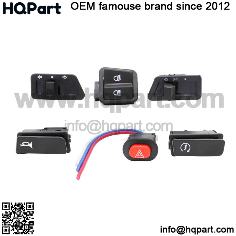 –Replacement buttons for Vento, Tao Tao, JOhnway type scooters. Includes 6 switches. HORN, Turn Signal, Hi/Low, 4 way flasher (Can also be kill switch) Start button and Lights (Off, parking Lights, Headlights) Some scooters come with that one as a kill switch.