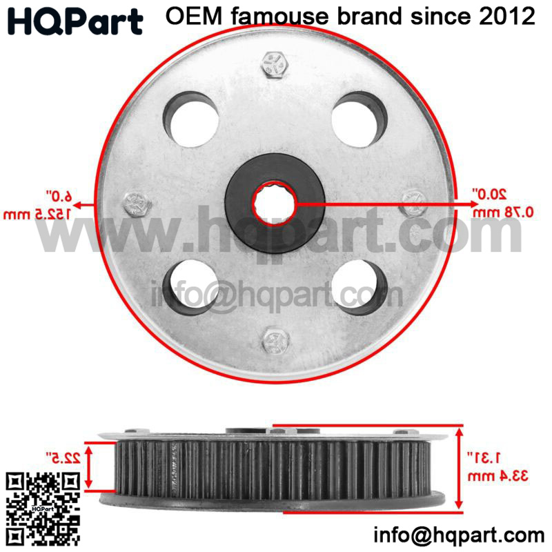 Order Includes:2 x Timing Pulley | 913-04040A 713-04040AWidth : 33.4mm | 1.31″Inner Diameter : 0.78mm | 20.0″Outer Diameter : 152.5mm | 6.0″