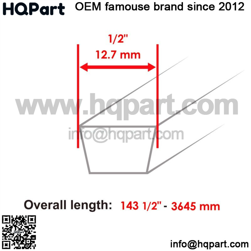 Belt fits John Deere 46″ Deck SABRE 1846HV 2046HV GX10176 (1/2×143 1/2″)