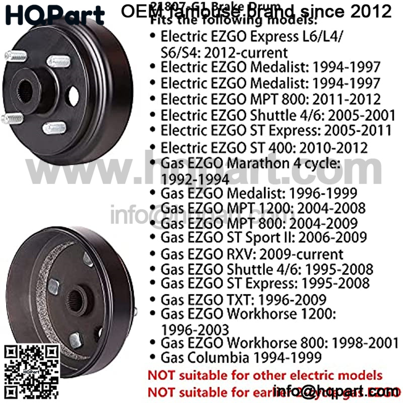 Brake Hub Drum for 4 Cycle Gas EZGO TXT, RXV, Marathon, Medalist, Shuttle 4/6, ST Express/Sport II, MPT, Workhorse, OEM# 21807-G1 21807G1 41843-94