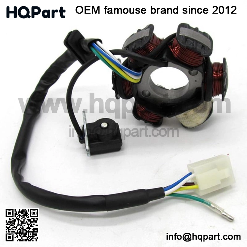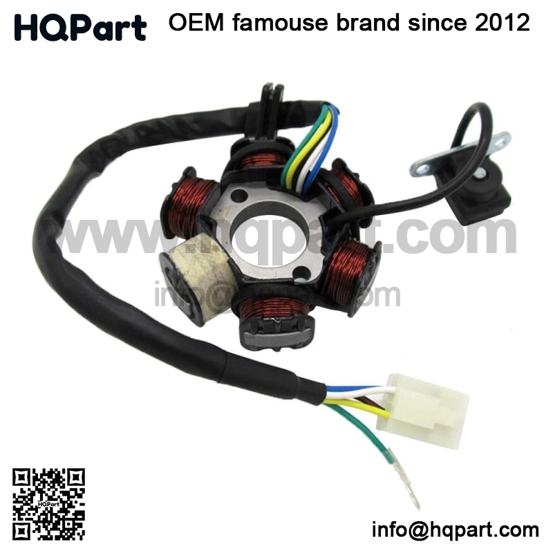 Import Product Description:This Chinese Stator Magneto is the replacement part for many Chinese 4 Stroke, Dirt Bikes, Go Karts and Scooters. This stator fits 50cc, 70cc, 90cc, 110cc, 125cc 150cc models. DescriptionFeaturesColorBlackPower0 WCompatibilityas describedCountry of OriginChinaOrientationRear-LeftBCIVariableAssembled Product Length10 cmAssembled Product Height2 cmCompatible Car Modelas describedKeywordsMagnet StatorAssembled Product Width10 cmColor RangeBlackAssembled Product Weight0.33 kgPackage Content1 piece magneto stator DescriptionFeature sImport product Description:This magnet Chinese stator is the replacement part for many Chinese 4-stroke, Dirt Bikes, Go Karts and Scooters. This stator fits 50cc, 70cc, 90cc, 110cc, 125cc 150cc models.Specification: 2 bolt mounting, 6 coils, 5 4-pin wires.Center hole diameter: 40