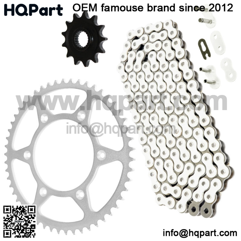 The chain comes in standard 120 Links1. Drive Chain with Master Link and Rivet Link (Tensile Strength 6000 pounds)2. Front Sprocket 13 Teeth / Material: Steel