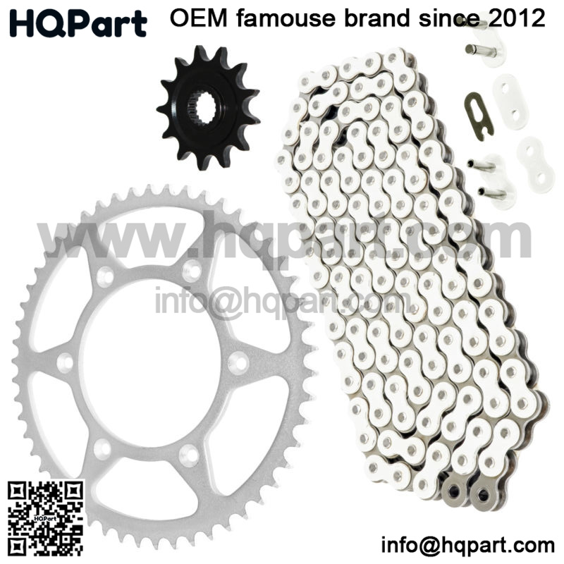 The chain comes in standard 120 Links1. Drive Chain with Master Link and Rivet Link (Tensile Strength 6000 pounds)2. Front Sprocket 13 Teeth / Material: Steel