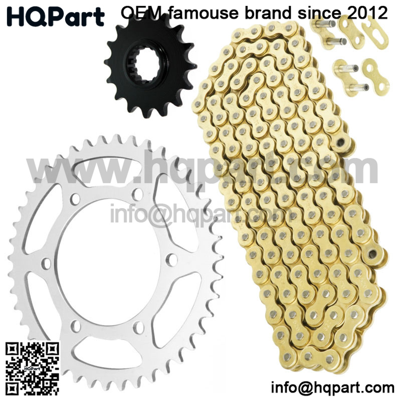 The chain comes in standard 120 Links1. Drive Chain with Master Link and Rivet Link (Tensile Strength 6000 pounds)2. Front Sprocket 16 Teeth / Material: Steel