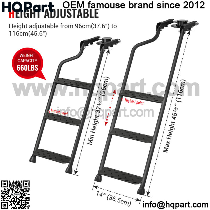 This rear gear ladder is adjustable from 37.6 inches to 45.6 inches. Make this pickup accessories to be made of matching heights of 28-45 ” trucks. This product expansion and smooth, fixed firmly. And the load-bearing capacity is still excellent at up to 660 lb.