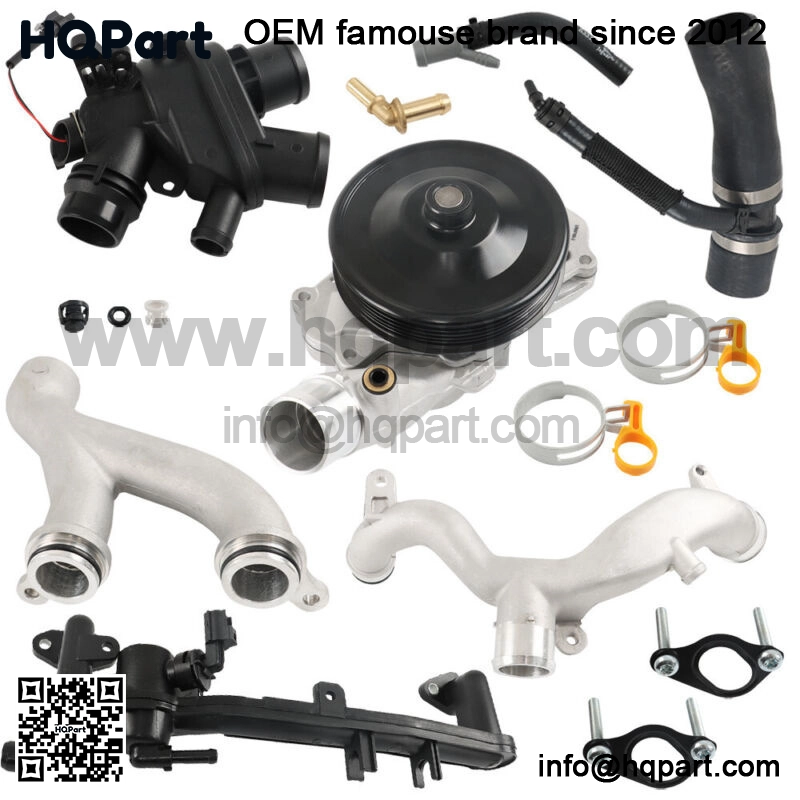 Part Number??Crossover Pipe: LR092992, LR090630, AJ813917,C2Z28536, C2Z18615, AJ811340 and AJ813865Crossover Plug: C2D3648 and LR011038Rear Heater Pipe W/ Sensor: LR109401, LR041788, LR075991, LR087558, LR122710, AJ814053, AJ814006, AJ813848, C2Z18624 and C2Z31644Water Pump: AJ813909, AJ812119, AJ814042, C2D20660, C2Z21781, C2Z28248, C2Z29189,C2Z30684, C2Z31146, C2Z31587, LR097165, LR073711 and LR116115 Thermostat: LR117568, LR107288, AJ813986 and AJ814048Thermostat Hose: LR048474,LR049990, C2Z28258 and C2Z27933Heater Outlet: LR045239 and AJ813565 Description:Condition: 100% Brand NewMaterial: Aluminum,RubberColor: MetallicFitment Type: Direct ReplacementPlacement on Vehicle: Engine Compartment Fitment:Fit for Jaguars and Land Rovers all AJ126 3.0L Supercharged V6 and AJ133 5.0 Supercharged V8 (Note: THIS DOES NOT FIT THE NATURALLY ASPIRATED 5.0 ENGINE!)Fit for Jaguar F-Type 3.0L V6 – Gas, 5.0L V8 – Gas 2014-2021Fit for Jaguar F-Pace 5.0L V8 – Gas 2020Fit for Jaguar F-Pace 3.0L V6 – Gas 2017-2020Fit for Jaguar XF 3.0L V6 – Gas 2013-2020Fit for Jaguar XF 5.0L V8 – Gas 2010-2015Fit for Jaguar XE 3.0L V6 – Gas 2017-2019Fit for Jaguar XJ 3.0L V6 – Gas 2013-2019Fit for Jaguar XJ 5.0L V8 – Gas 2010-2019Fit for Land Rover Discovery 3.0L V6 – Gas 2017-2020Fit for Land Rover Range Rover 3.0L V6 – Gas 2014-2020Fit for Land Rover Range Rover 5.0L V8 – Gas 2010-2020Fit for Land Rover Range Rover Sport 3.0L V6 – Gas 2014-2020Fit for Land Rover Range Rover Sport 5.0L V8 – Gas 2020Fit for Land Rover Range Rover Sport 5.0L V8 – Gas 2010-2018Fit for Land Rover Range Rover Velar 3.0L V6 – Gas 2018-2020Fit for Land Rover Range Rover Velar 5.0L V8 – Gas 2020Fit for Land Rover LR4 3.0L V6 – Gas 2010-2016Please check part photos, part number, part description and compatibility chart above carefully and compare them with your old part to make sure it is what you need. Package Included:Thermostat with a Sensor,Aluminum Coolant Crossover Pipes, Water Pump, Thermostat Outlet Hose with Copper Fittings, Copper Bleeder Screw, Cross Over PlugHeater Outlet Hose Notes:1??No installation instruction included, professional installation is highly recommended.2??The real color of the item may be slightly different from the pictures shown on website caused by many factors such as brightness of your monitor and light brightness.