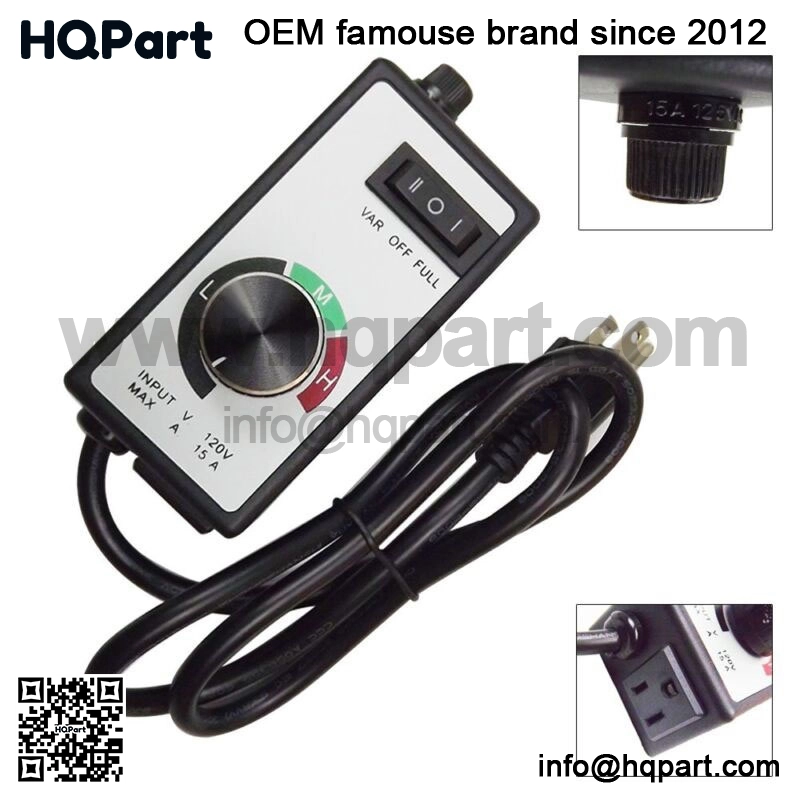 Three settings include off, on (full) and variable. Simple use the dial to increase or decrease fan motor speed. 120 volt/15 amps.