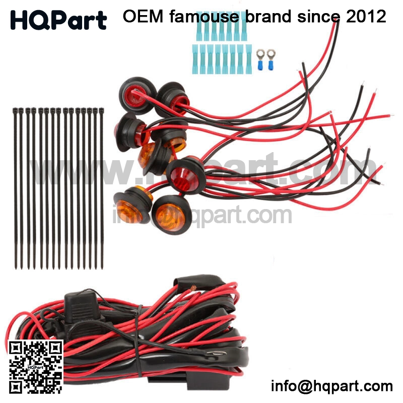 Universal UTV turn signal kitLighted rocker switch fits into industry standard cutout (.83″x1.48″)Custom harness with backlit feature (Switch illuminates with key on)Built-in blue LED indicators flash when selectedRound Led lights fit into 3/4″ diameter holeCustom harness prewired onto switch for easy installOnly 2 connections to vehicle required for operation: 12v+ keyed ignition, 12v-(ground) This universal turn signal kit fits many modern UTV, golf carts and side by side vehicles. Kit includes LED lights for all 4 corners of the vehicle and is designed to operate from lights ensuring no need to worry about splicing into factory wiring.Customized rocker switch utilizes built in blue led indicators that illuminate with key on and also flash with corresponding turn signal. FeaturesPrewired harness plugs onto rocker switch for easy install.Blue lighted rocker switch illuminates with key on and also flashes when selected indicating direction.4- amber LED lights for the front (Black wire =positive White wire= negative)4-red LED lilghts for the rear (Black wire =positive White wire= negative)Adjustable flasher relay40 feet of matching color coded black/white bonded wire for the LED lights