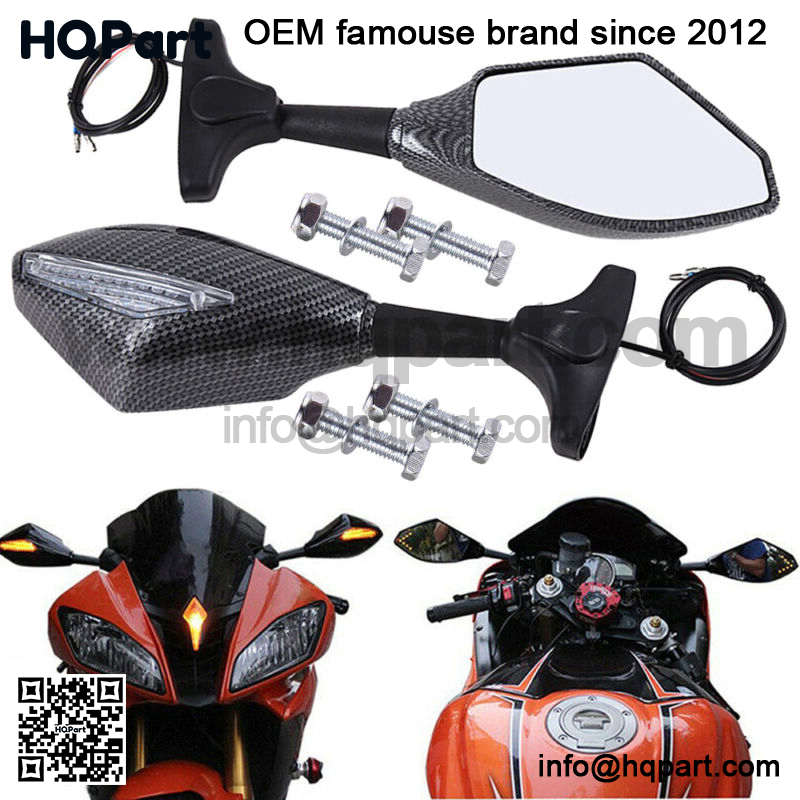 For Yamaha YZF R1 R6 FZ1 FZ6 600 Motorcycle Black Mirror LED Turn Signal Carbon