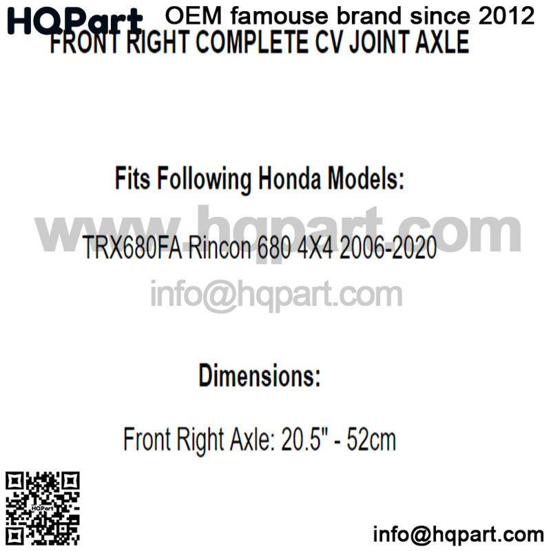 Front Right Complete CV Joint Axle for Honda TRX680FA Rincon 680 4X4 2006-2020