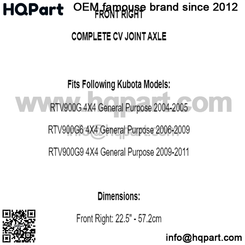 Front Right Complete CV Joint Axle for Kubota RTV900G 4X4 General Purpose 04-11