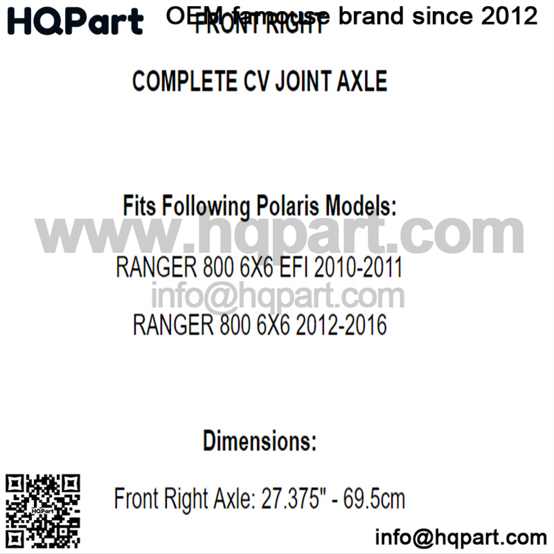 Front Right Complete CV Joint Axle for Polaris Ranger 800 6X6 2010-2016