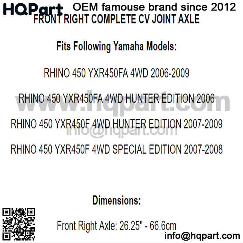 Front Right Complete CV Joint Axle for Yamaha Rhino 450 YXR450F 4WD 2006-2009