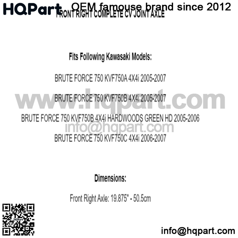Front Right CV Joint Axle for Kawasaki Brute Force 750 KVF750 4X4I 2005-2007
