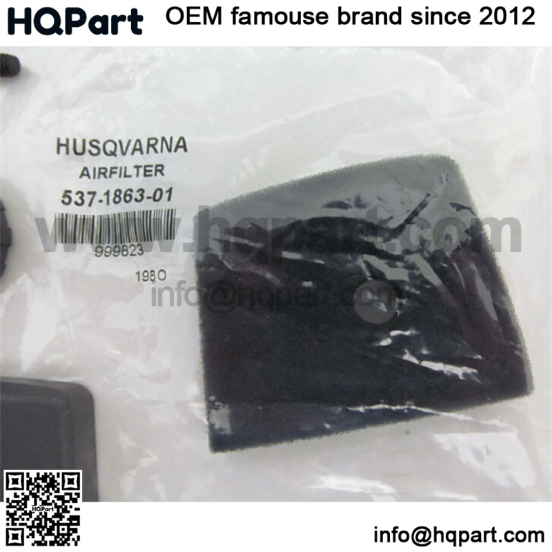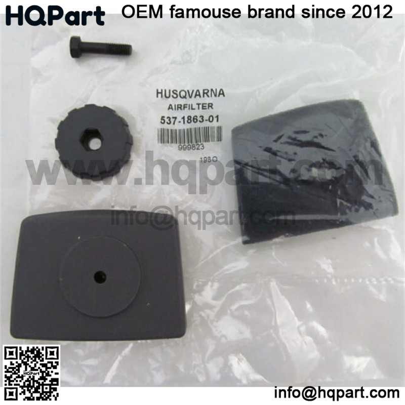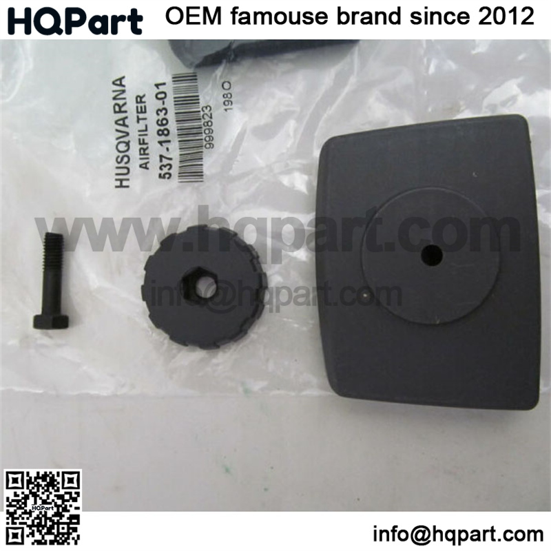 OEM Husqvarna air filter cover kit which includes the air filter, air filter cover, knob and bolt. The part number for the air filter is 537186301. The part number for the cover is 503888001. The part number for the knob is 502204001. This kit will fit the Husqvarna trimmer models 123C, 123L, 123LD, 223L, 223R, 322L, 323C, 323E, 323HE3, 323L, 323LD, 323P4, 323R, 323RJ, 325C, 325CX, 325EX, 325HDA55, 325HDA65, 325HE3X, 325HE4X, 325L, 325LDX, 325LX, 325P4X, 325P5X, 325RDX, 325RJX and 325RX.