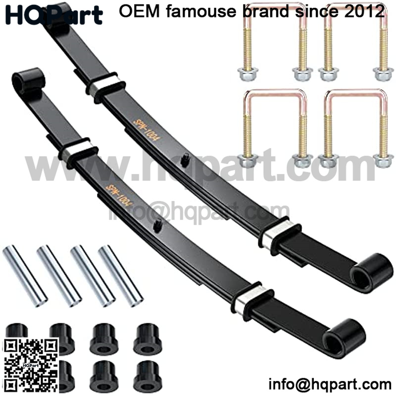 Kit includes: 2 * heavy duty 3-leaf rear springs, 8 * rubber bushings 70291-G01, 4 * metal spacer 70289-G02, 4 * U bolts 72618-G01