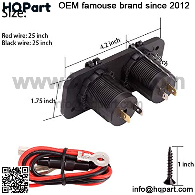 2 USB Charging Ports:one Quick Charge 3.0 USB port,one 2.4 A big output port,enables to charge 2 devices simultaneously. Built-in smart chip will intelligently detect your devices and charging devices at optimal current; This USB charger sockets fits for 12 VOL input golf carts;