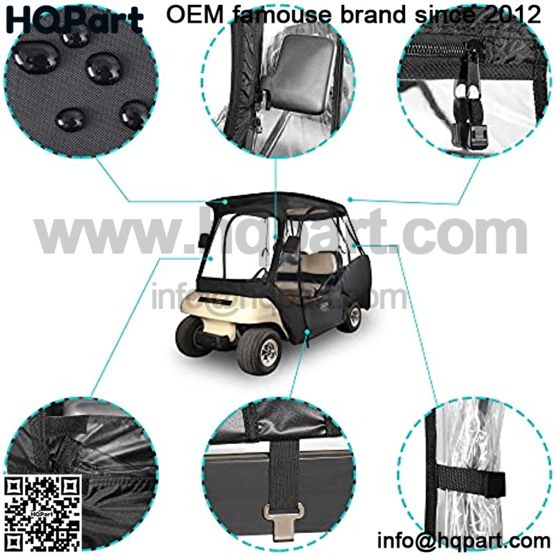 Both sides of the Golf cart Enclose use upgrade resin zipper, easily slide and durable, well solve stuck problem; zippered doors also make you easier to get on and get off;Front Clear Window can be detachable, freely take it off if no need or clean & dry if feel dirty, Rear Clear Window can be opened or rolled up, for being convenient to take golf clubs off and put in.