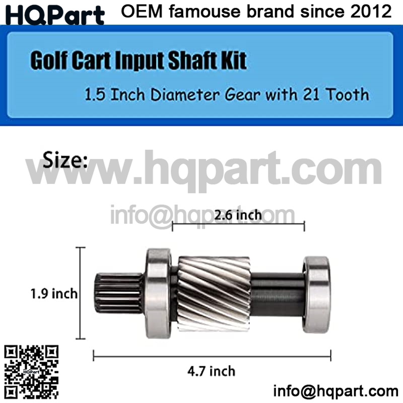Electric golf cart Input Shaft Repair Kit (With 21 Tooth). Includes Shaft, Bearings.
