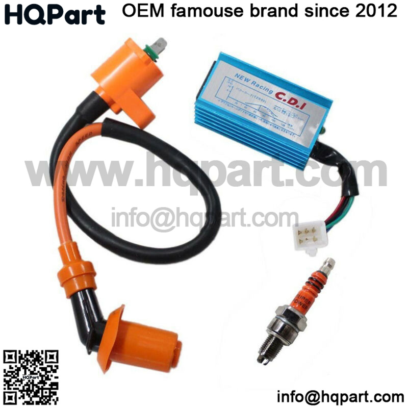 This New 6 pins racing high performance CDI + Ignition Coil + Spark Plug for Gy6 50cc – 150cc Scooter ATV