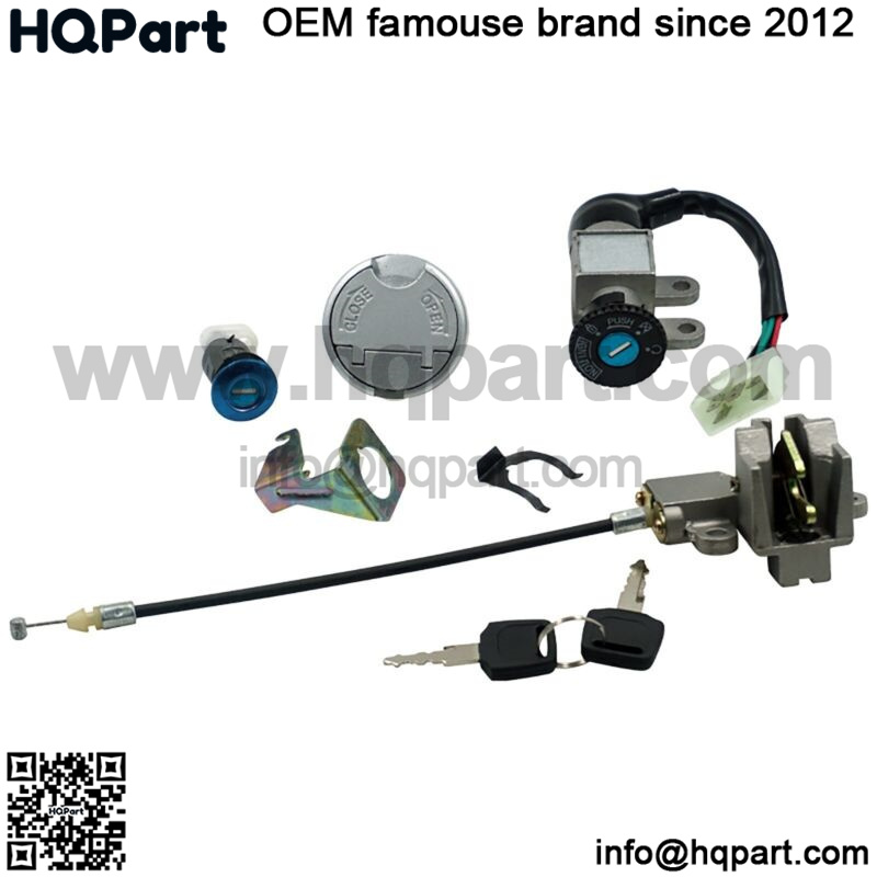 Packing: key ignition with 5 wires,set of 2 keys,gas tank cap lock,seat lock and mounting clip,seat latch and cable assembly
