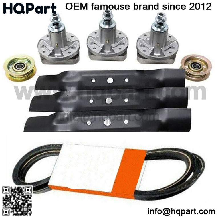 kit includes: 3-Spindles Assembly, 3-Blade, 2-Idler Pulley,1-Idler pulley ,1-Drive Belt