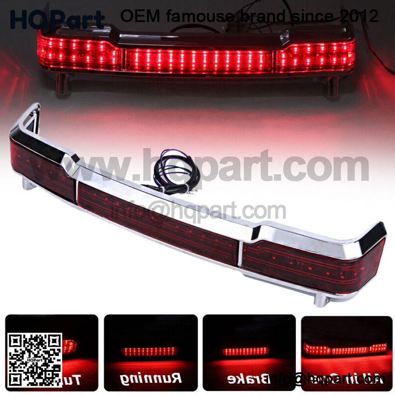 The LED lamp kit is a direct plug-in replacement for the stock LED red lens wrap-around Tour-Pak carrier’s light. Perfectly fit 1997-2008 Harley Touring King Tour Pak Pack Trunk.