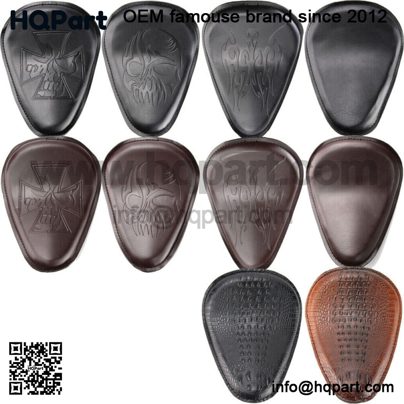This is the solo driver seat and springs, bracket,which made of high quality leather and steel, and there are2 colors (black and brown) and 6 patterns availablefor choosing, in addition, the seat will be custom fit forSportster, Chopper and Bobber, also fit to most models,such asHarley, Honda, Yamaha, Suzuki and so on.