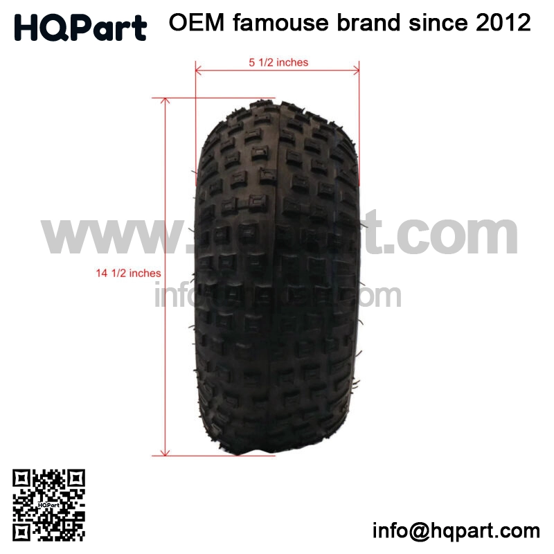 replacement (Pack of 2) Knobby Tire 145/70-6 for General Purpose ATV, Go-Kart, Mini BikeSpecs – Tire Size: 145x70x6, Rim Size: 6×4.5, Overall Diameter: 14.4″, Section Width: 5.4″, Section Width: 5.4″, Tire Pressure: 4 PSI, Max Load: 75 lbs, Type: Tubeless, Tread: Knobby, Ply: 2 Ply. Refer to images 2 & 3 for more informationIncludes – (2) 145/70-6 Tubeless Knobby Tread Tires; comes as shown in the first imagePuncture resistant for durability. Strong carcass designed to support the weight of equipment. Versatile stud tread design for multi-purpose conditions. Provides extra traction and bite in hard and soft terrain
