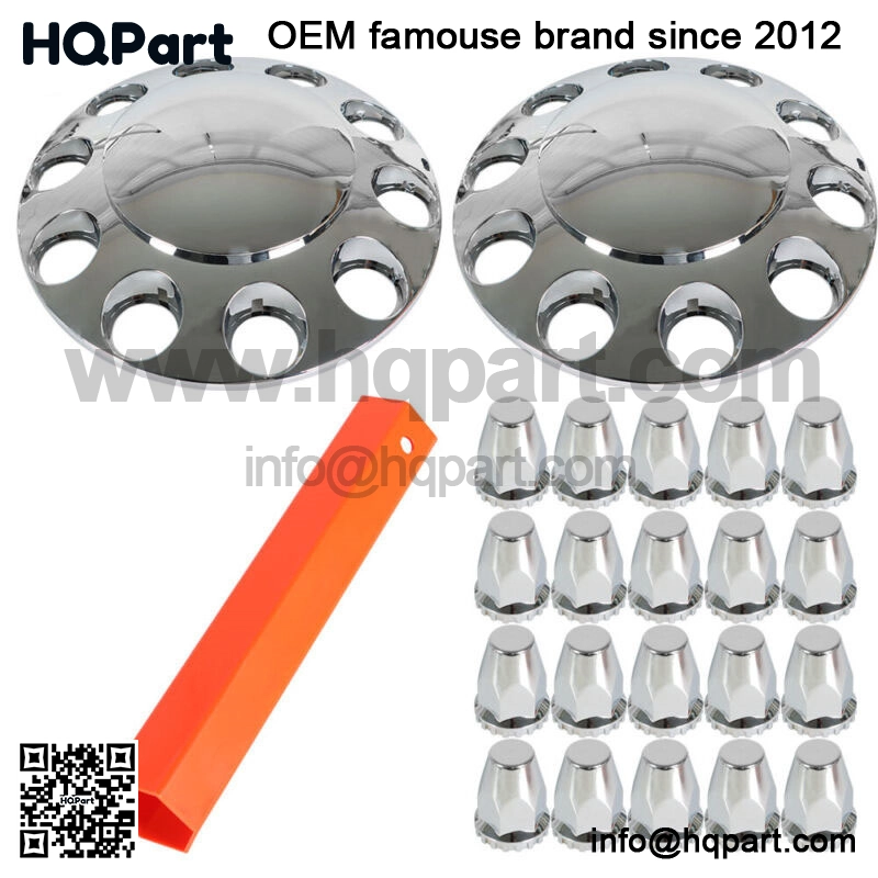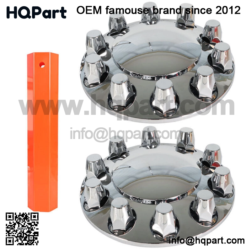 Pair Chrome Front Wheel Covers 33mm Hub Axle Semi Truck ABS Plastic Satin