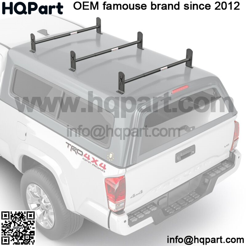 Pickup Truck Cap Topper 3 Cross Bar Ladder Roof Van Rack Adjustable Steel Black