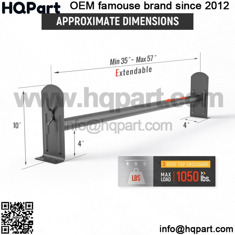 1.2″ diameter cross bars;Length adjustable from 35″ to 57″
