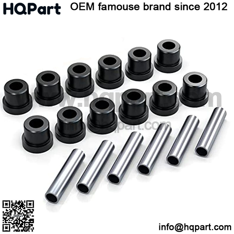 Package Include: Complete set of leaf spring bushings (Both front and Rear Leaf Springs) and Upper suspension shackle bushings and sleeves. Contains 6 pieces leaf springs and 12 pieces bushings kit.