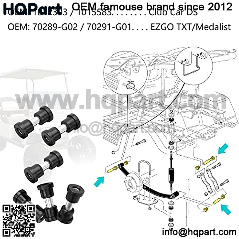 OEM Replacements for EZGO TXT: Fit for EZGO TXT 1994-up gas and electric models, replace spring sleeve Part No#: 70289-G02, replace spring bushing Part No#: 70291-G01