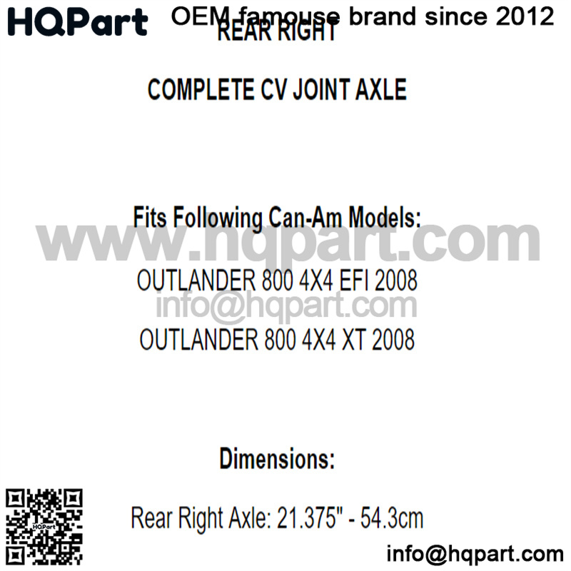 Rear Right Complete CV Joint Axle for Can-Am Outlander 800 4X4 Xt EFI 2008