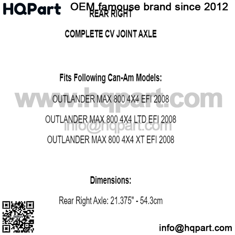 Rear Right Complete CV Joint Axle for Can-Am Outlander Max 800 Ltd Xt EFI 2008