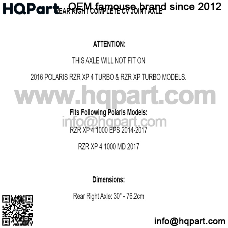 THIS AXLE WILL NOT FIT ON2016 POLARIS RZR XP 4 TURBO & RZR XP TURBO MODELS.