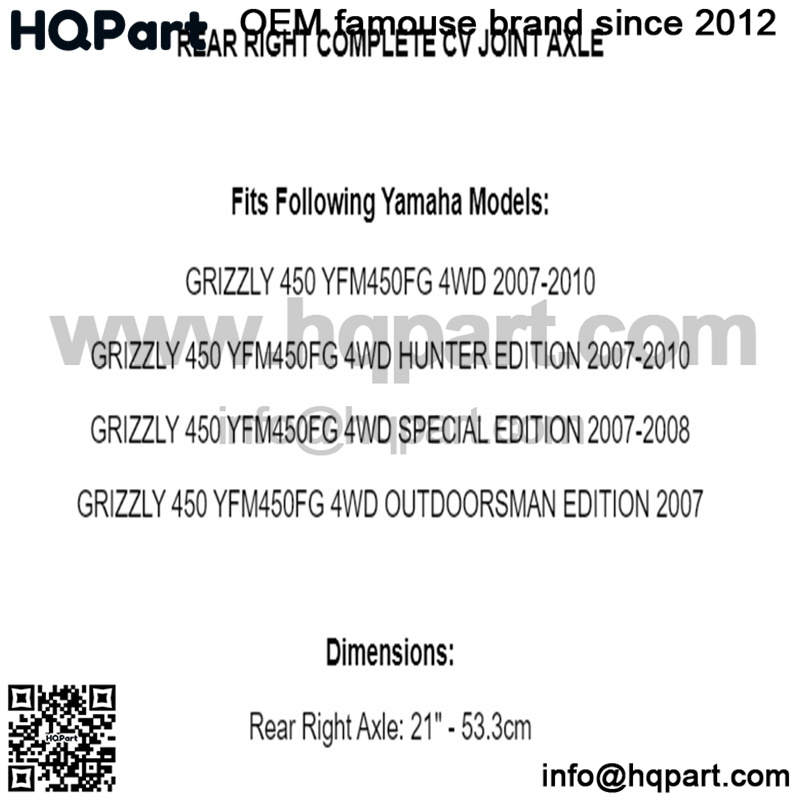 Rear Right Complete CV Joint Axle for Yamaha Grizzly 450 YFM450FG 4WD 2007-2010
