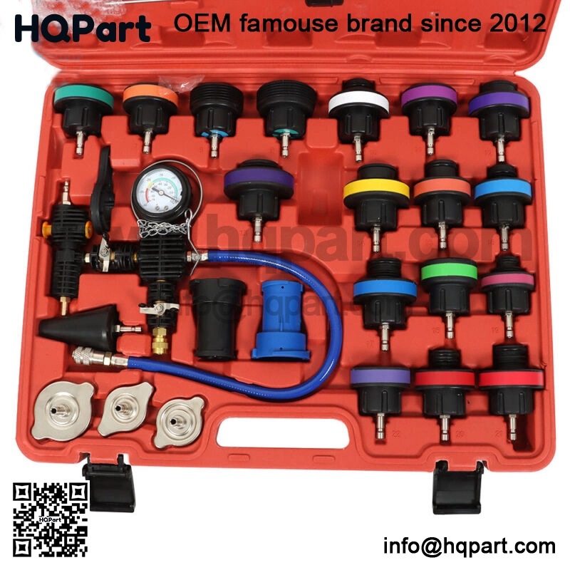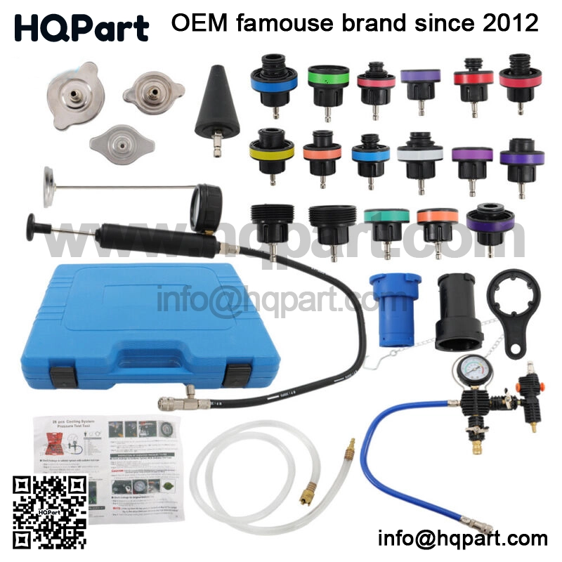 28 PCS Radiator Pressure Tester: Comes with various instruments, which help you solve any problem about radiator pressure conveniently and quickly.Special design of vacuum purge and refill tool connection allows easy testing for leakage in radiator system and quick change of coolant. With this pressure tester, you could easily do the job.